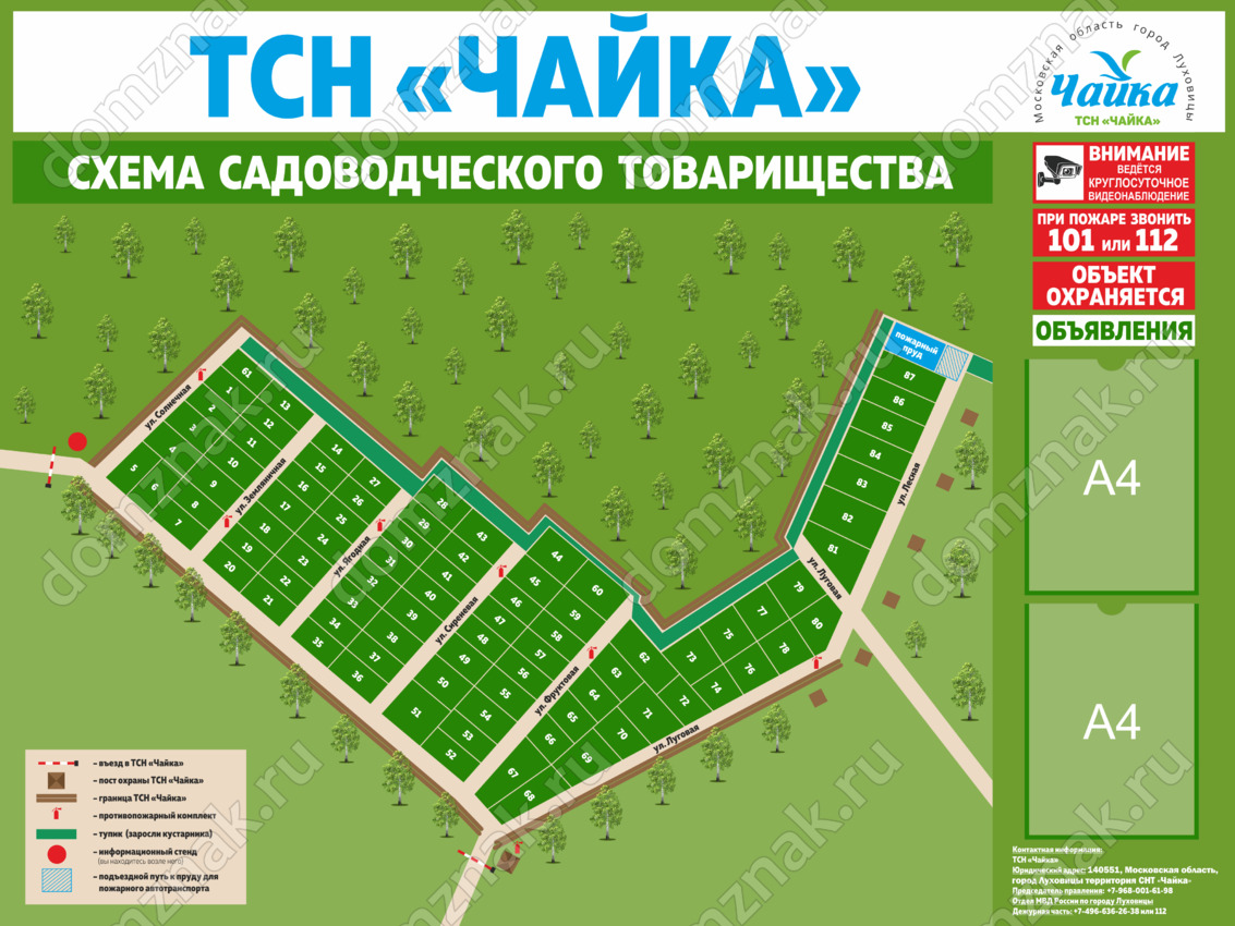 Табличка из оцинковки поставляется в сборе со стойкой (опорой), изготовленной из окрашенной профильной трубы. Размер трубы – 25x25 или 30x30 мм. Стандартная высота стойки – 2,3 метра. По желанию заказчика мы изготавливаем стойки и таблички произвольного размера. При определении высоты стойки необходимо учитывать глубину погружения конструкции в землю (бетон).