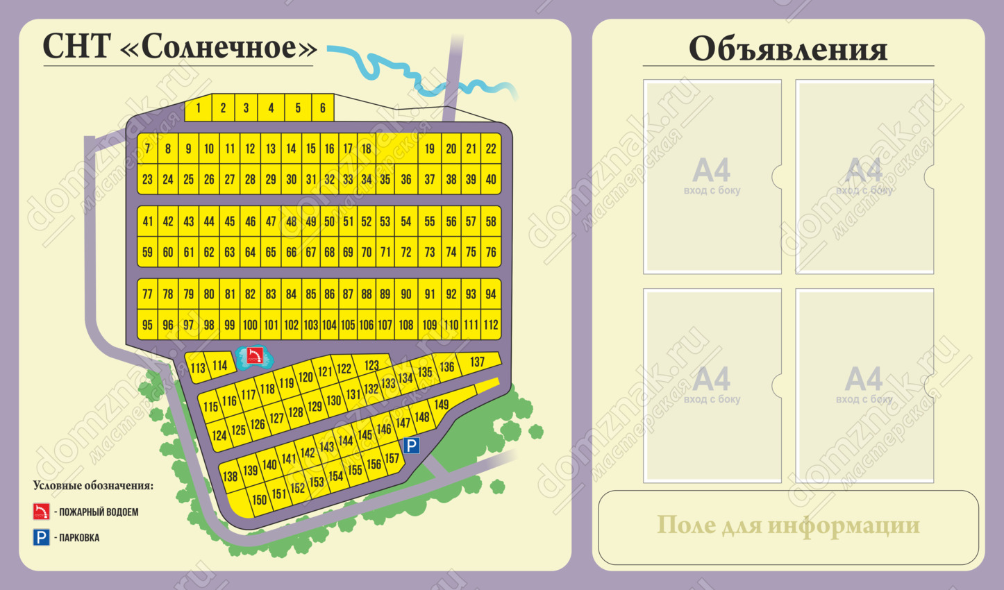 Табличка изготавливается на основе из пластика ПВХ (толщина 4 мм), оцинкованного металла (толщина 0,8 мм) или алюминиевого композита (толщина 3 мм). Подходит для установки на плоских поверхностях, таких как стена дома или забор.