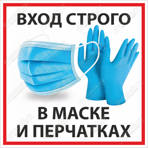 Табличка (наклейка) «Вход строго в маске и перчатках»