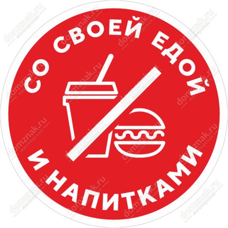 Наклейка «Со своей едой и напитками нельзя» изготавливается из матовой виниловой плёнки. Толщина наклейки 160 мкм, что позволяет легко наклеить ее на любую ровную поверхность без образования пузырей воздуха и складок.