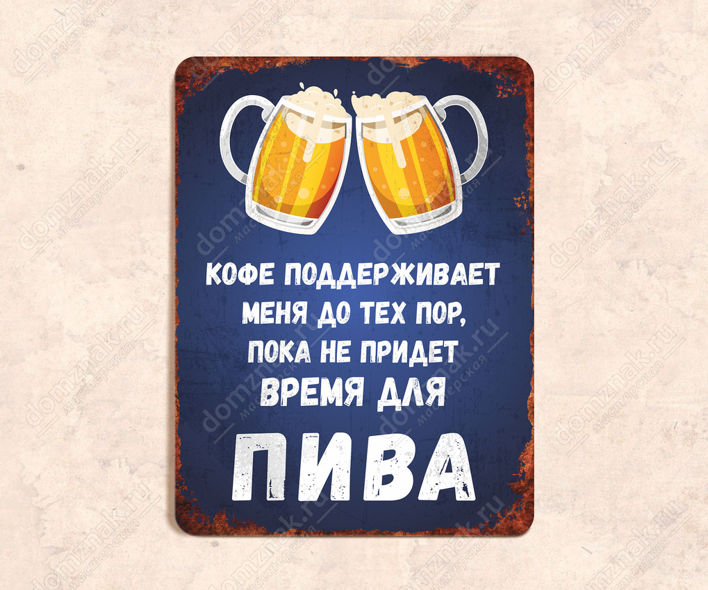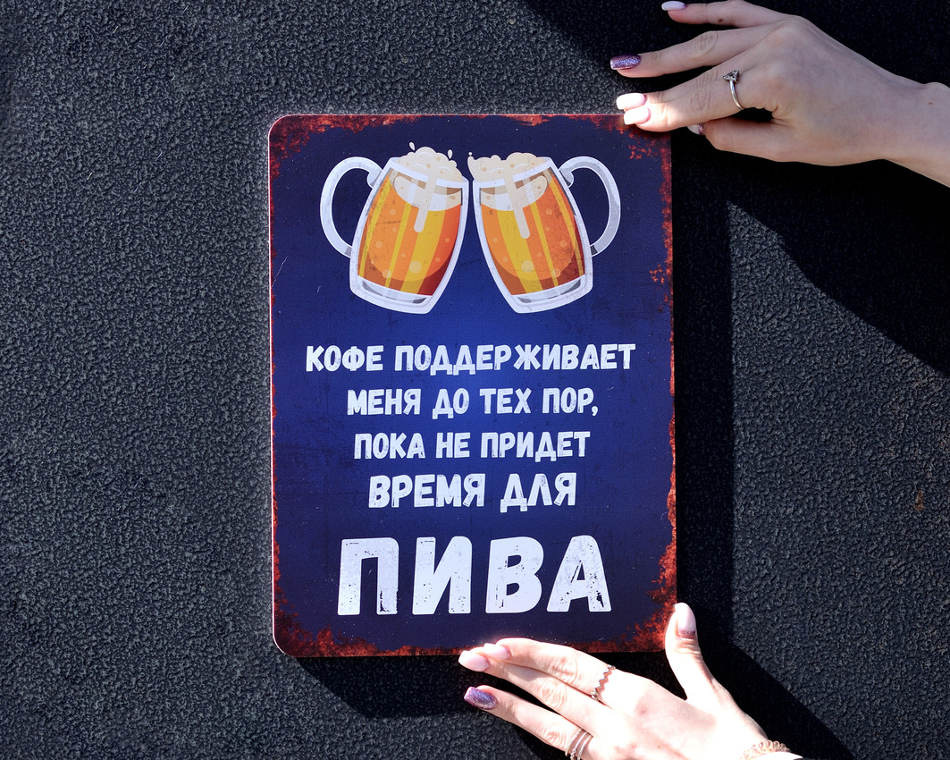 Табличка «Кофе поддерживает меня до тех пор, пока не придет время пива»