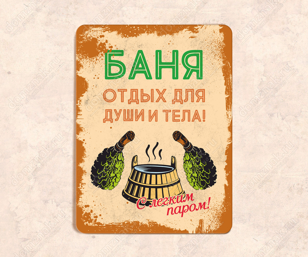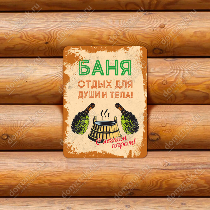 Табличка «Баня отдых для души и тела»