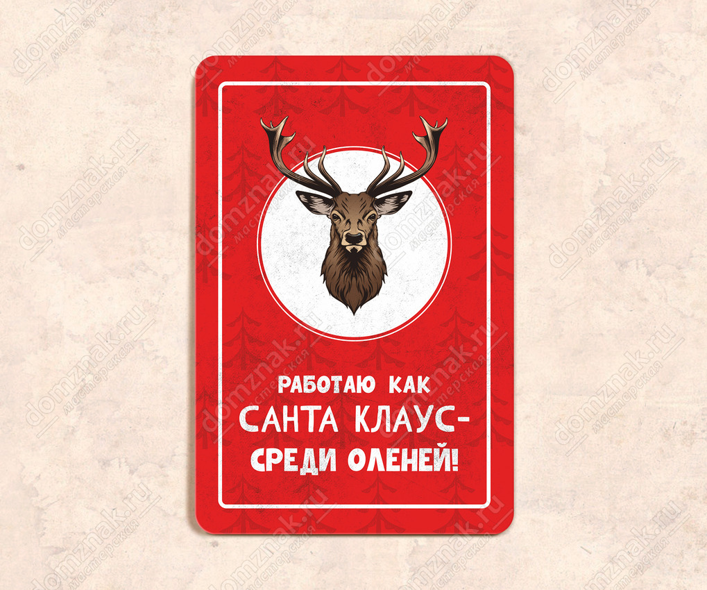 Табличка «Работаю как Санта Клаус – среди оленей»
