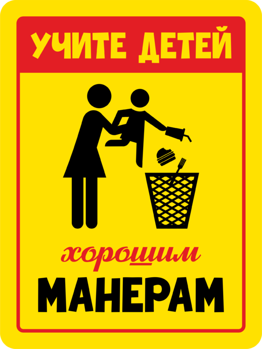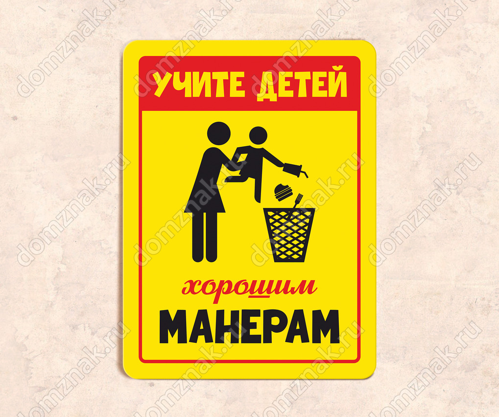 Табличка «Учите детей хорошим манерам» изготовлена из пластика ПВХ, толщиной 4 мм. Изображение наносится по технологии УФ-печати. Табличка предназначена для использования как в помещении, так и на улице.