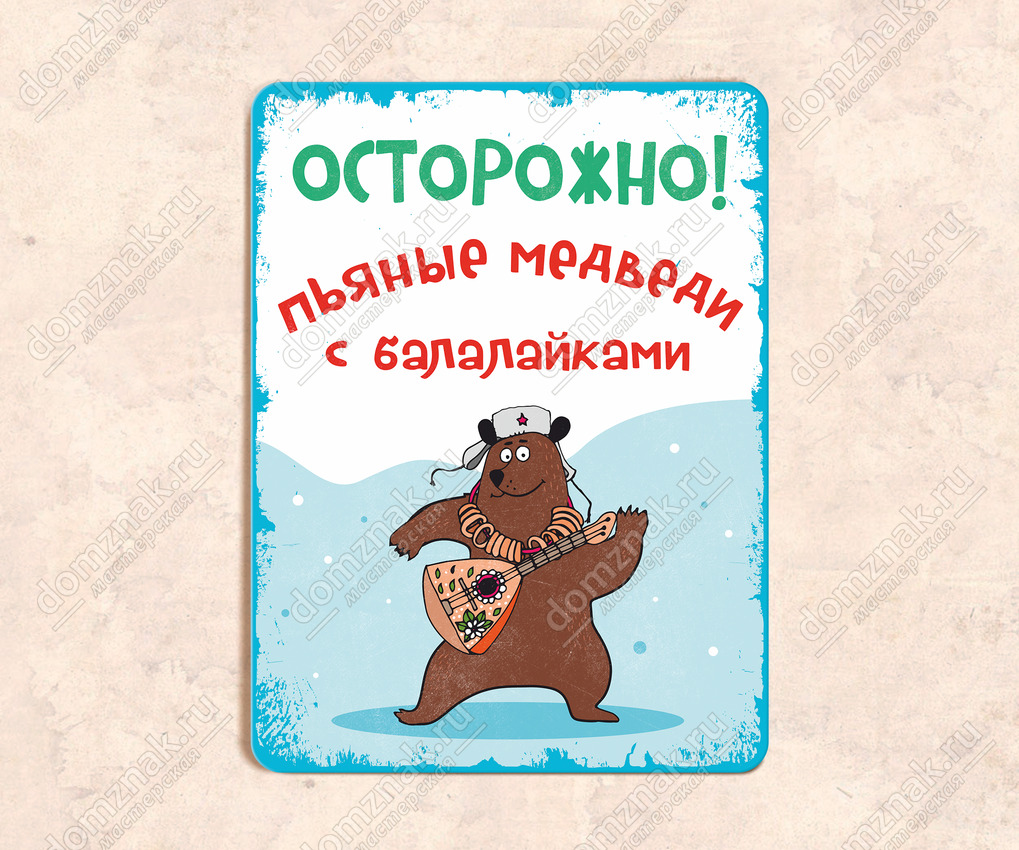 Табличка «Пьяные медведи с балалайками»