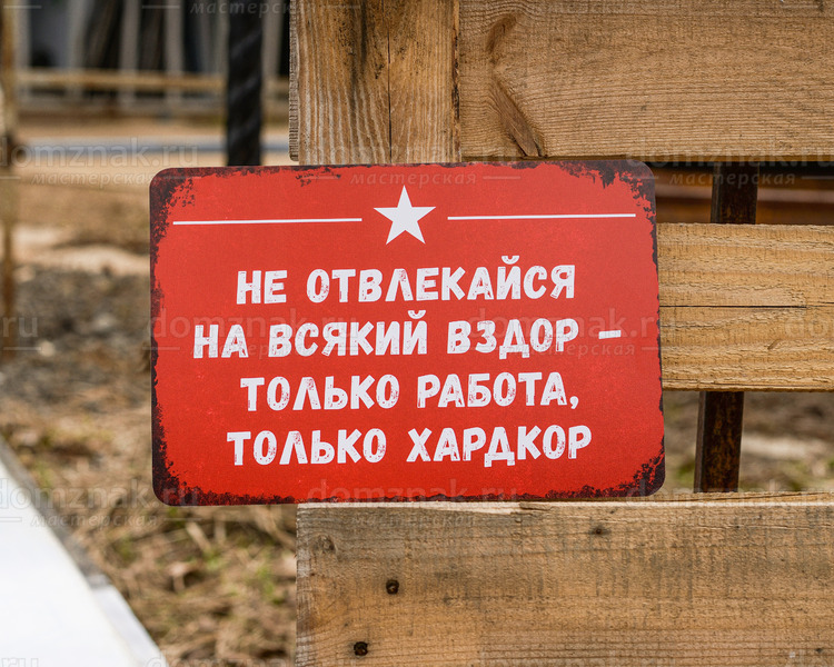 Табличка «Не отвлекайся на всякий вздор – только работа, только хардкор»