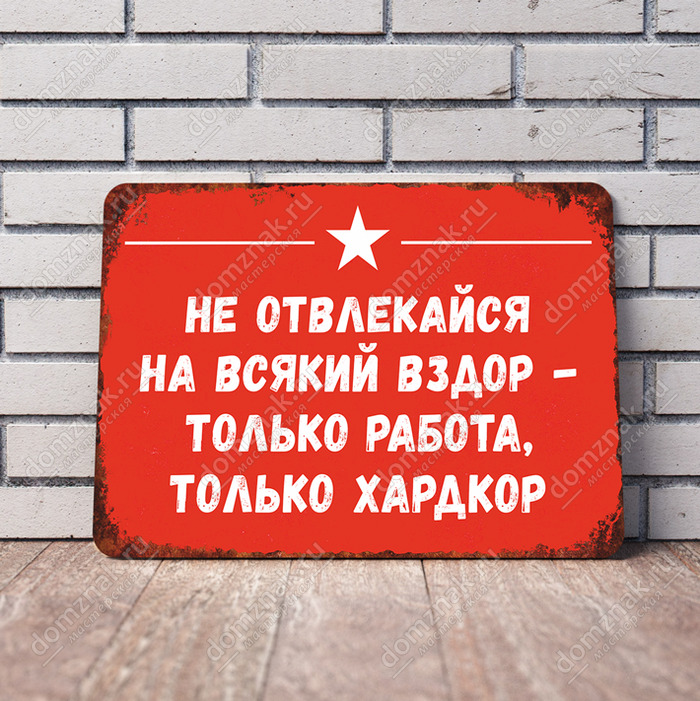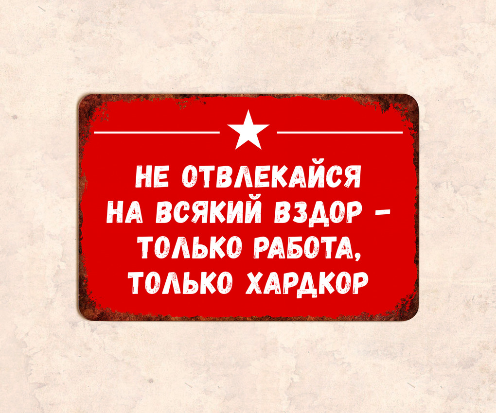 Табличка Не отвлекайся на всякий вздор – только работа, только хардкор