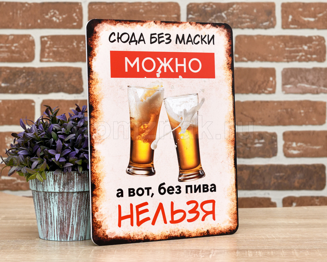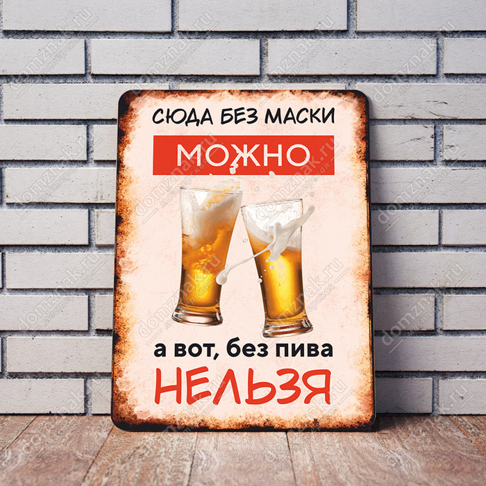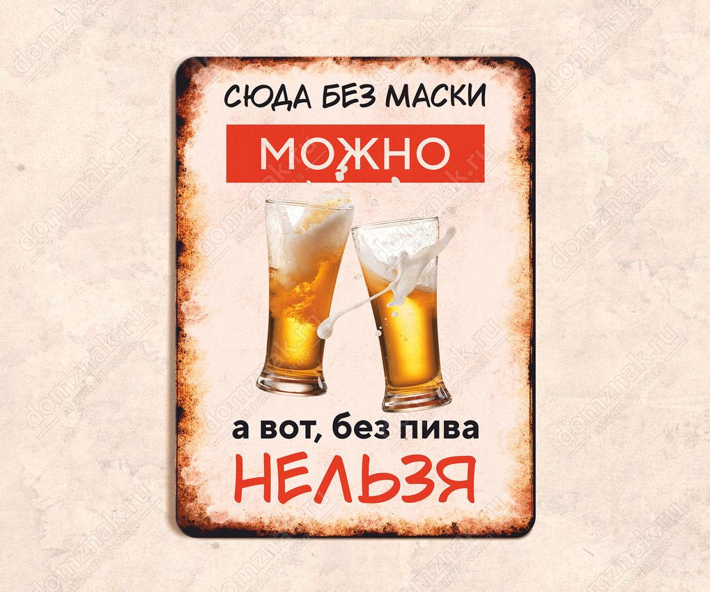 Табличка Сюда без маски можно, а вот без пива нельзя