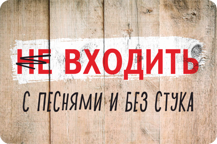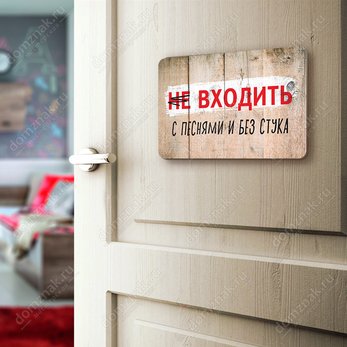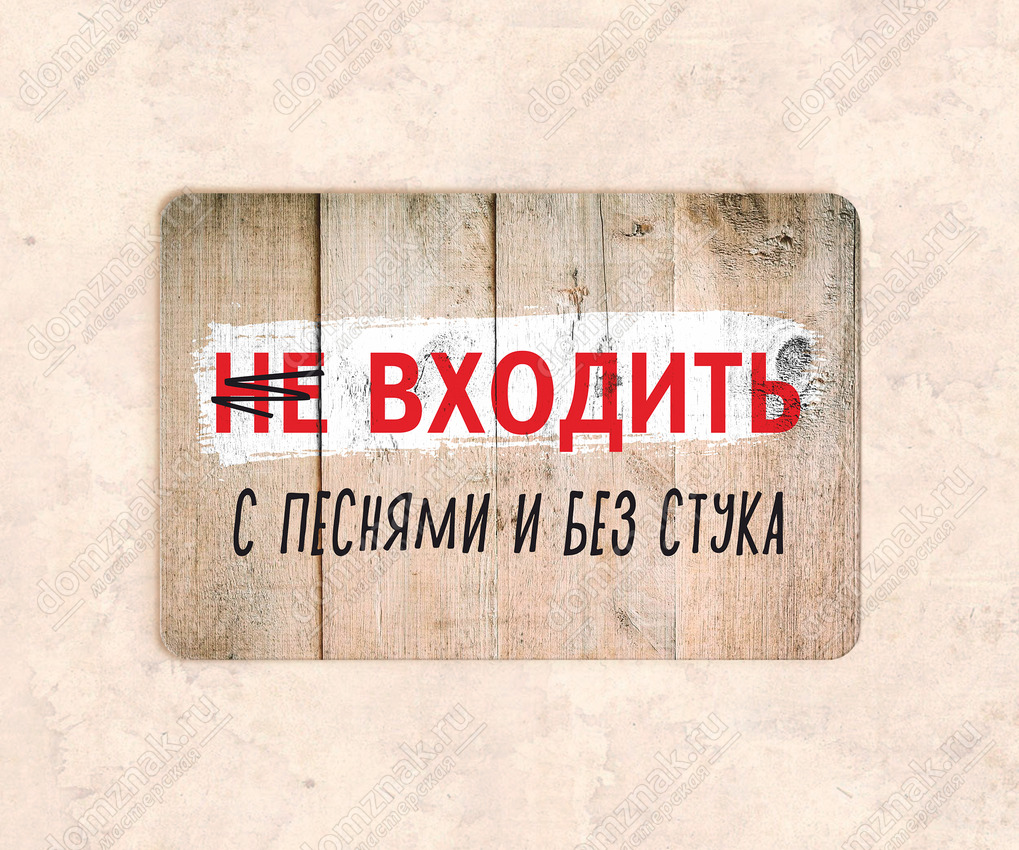 Табличка «Входить с песнями и без стука» изготовлена из пластика ПВХ, толщиной 4 мм. Изображение наносится по технологии УФ-печати. Табличка предназначена для использования как в помещении, так и на улице.