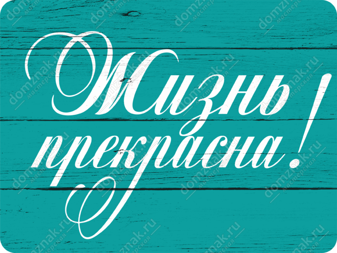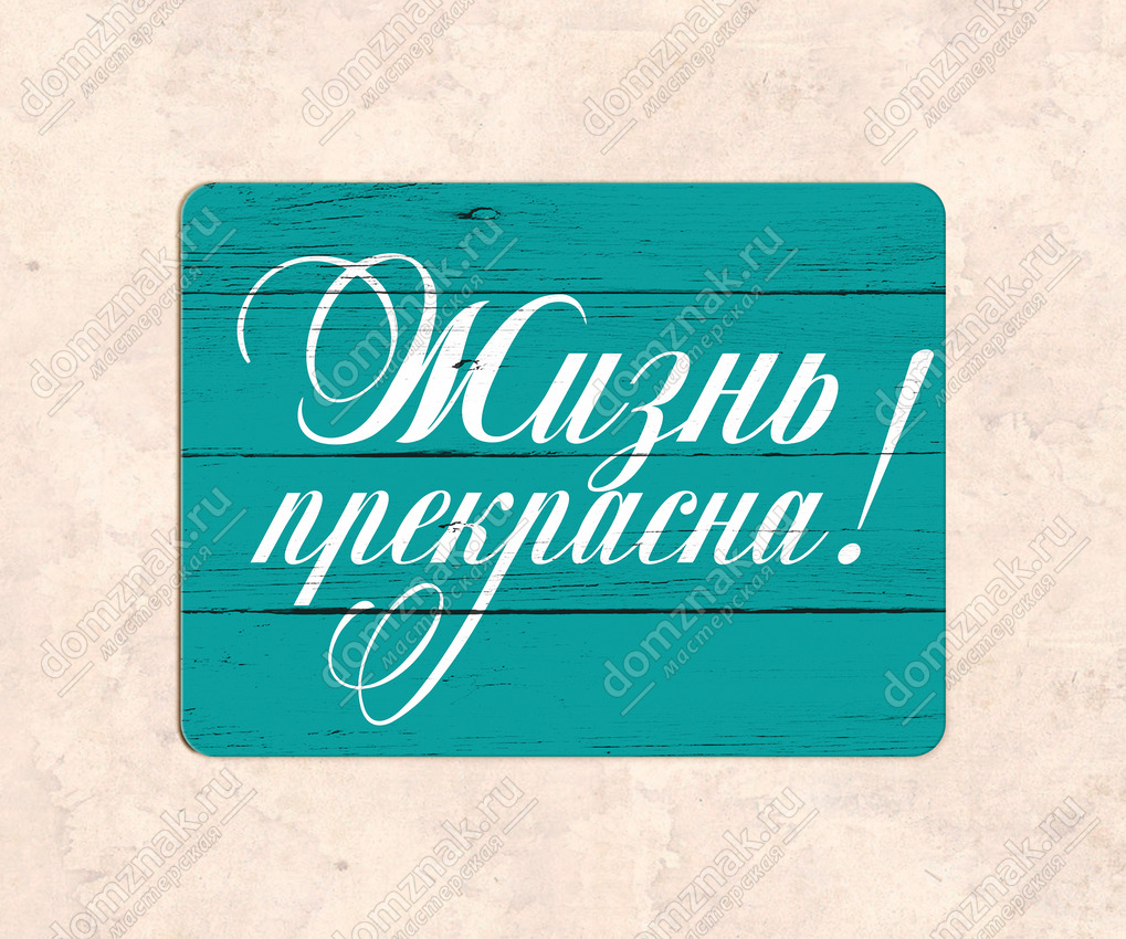Табличка «Жизнь прекрасна» изготовлена из пластика ПВХ, толщиной 4 мм. Изображение наносится по технологии УФ-печати. Табличка предназначена для использования как в помещении, так и на улице.
