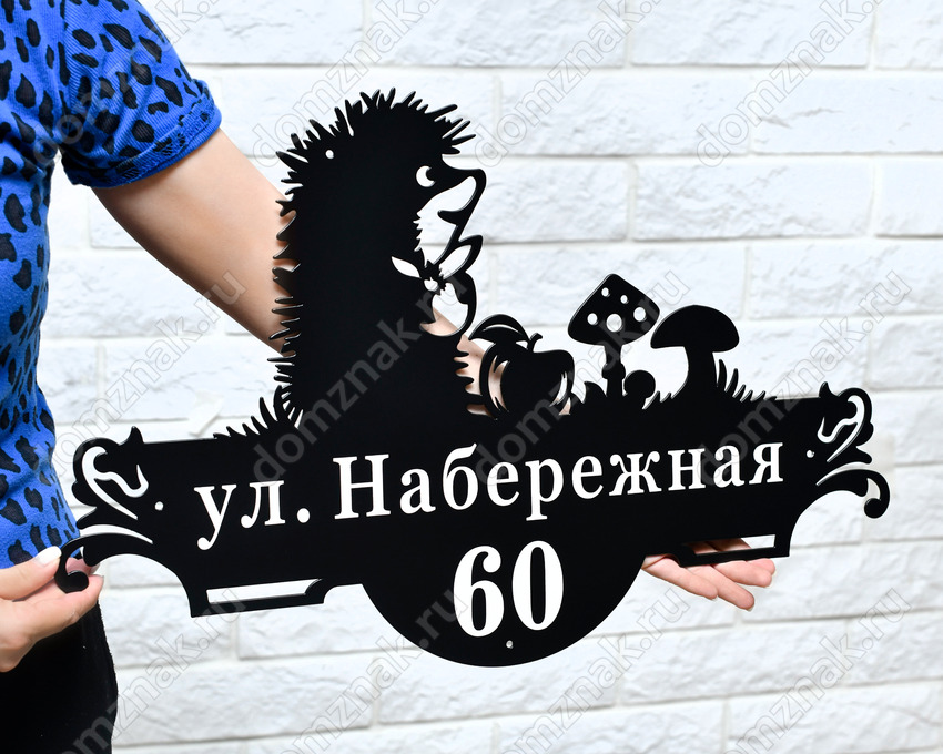 Стальная адресная табличка с ежиком
