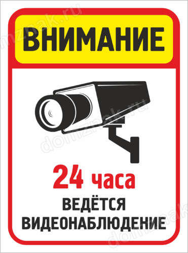 Табличка «Внимание ведется видеонаблюдение, 24 часа» изготавливается на основе из пластика ПВХ или оцинкованного металла.