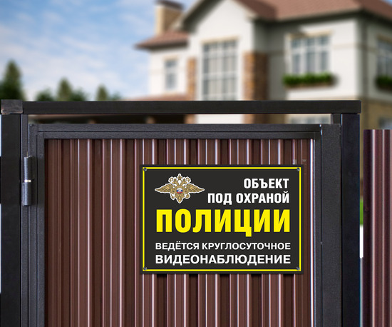 Табличка «Объект под охраной полиции. Ведется видеонаблюдение» изготавливается на основе из пластика ПВХ или оцинкованного металла.