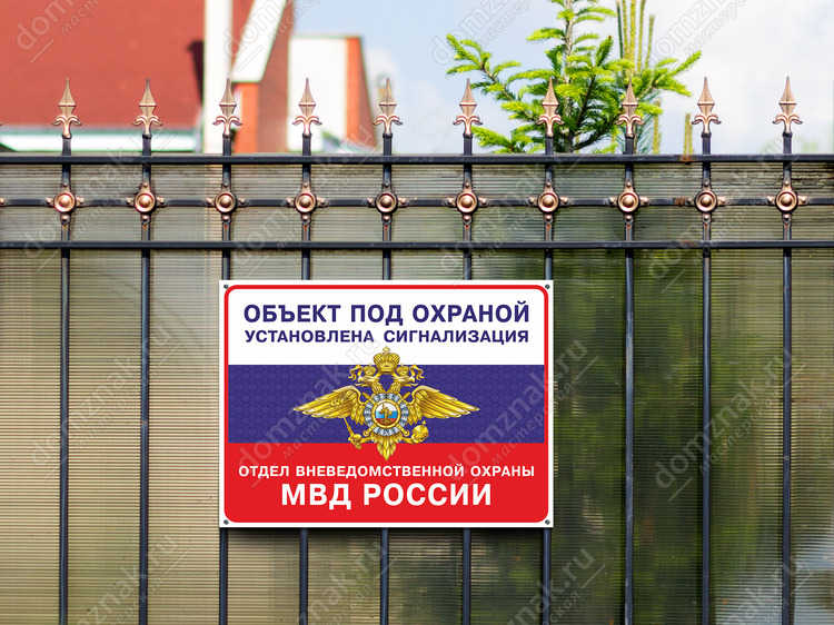 Табличка «Объект под охраной. Отдел вневедомственной охраны» изготавливается на основе из пластика ПВХ или оцинкованного металла.