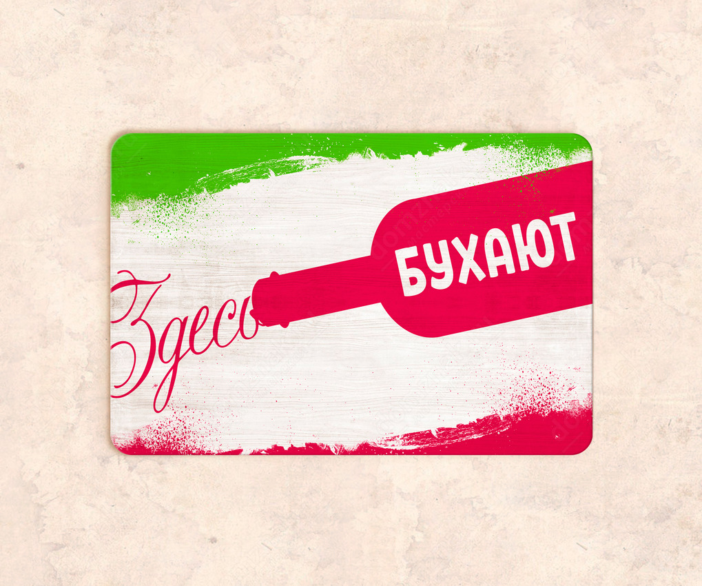Табличка «Здесь бухают» изготовлена из пластика ПВХ, толщиной 4 мм. Изображение наносится по технологии УФ-печати. Табличка предназначена для использования как в помещении, так и на улице.