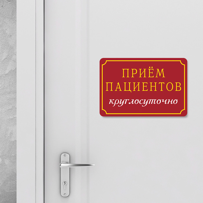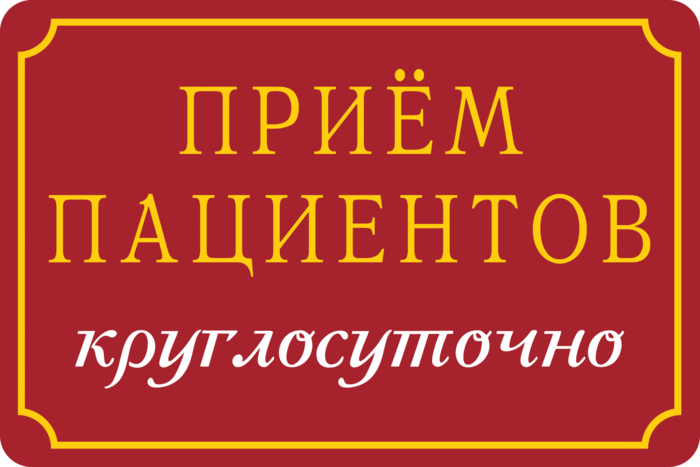 Табличка «Прием пациентов – круглосуточно»