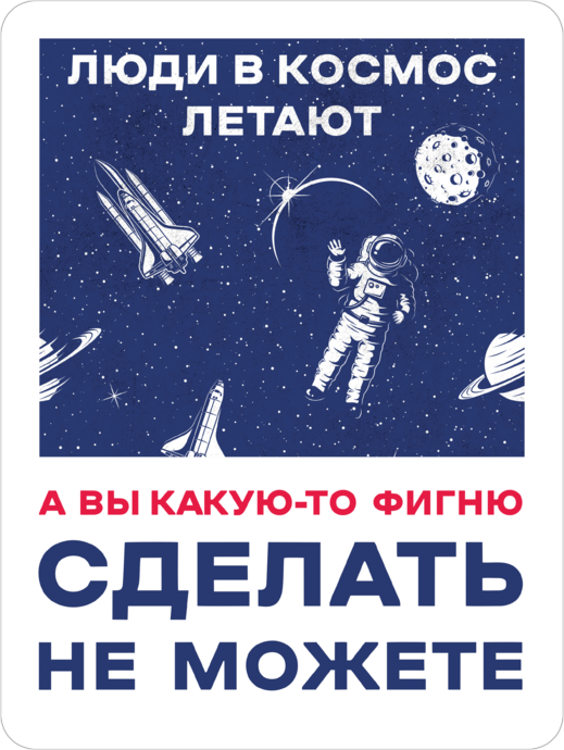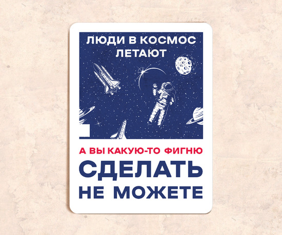 Табличка «Люди в космос летают, а вы какую-то фигню сделать не можете»