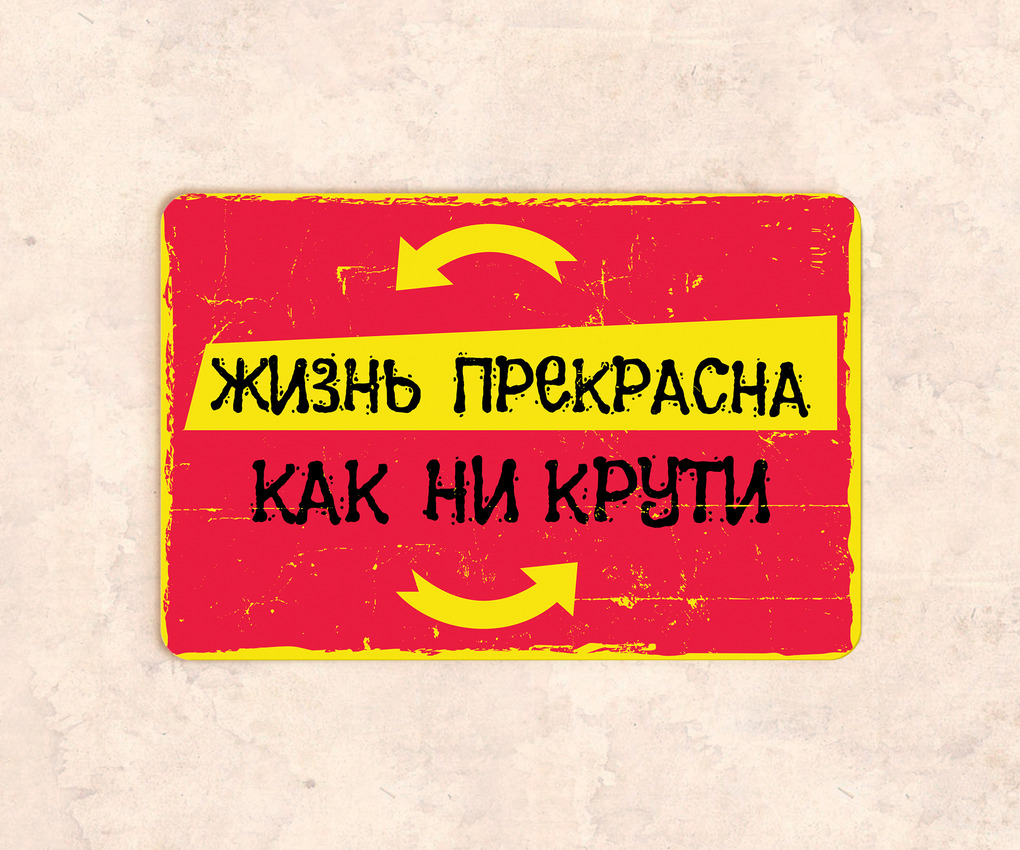 Табличка «Жизнь прекрасна как ни крути» изготовлена из пластика ПВХ, толщиной 4 мм. Изображение наносится по технологии УФ-печати. Табличка предназначена для использования как в помещении, так и на улице.