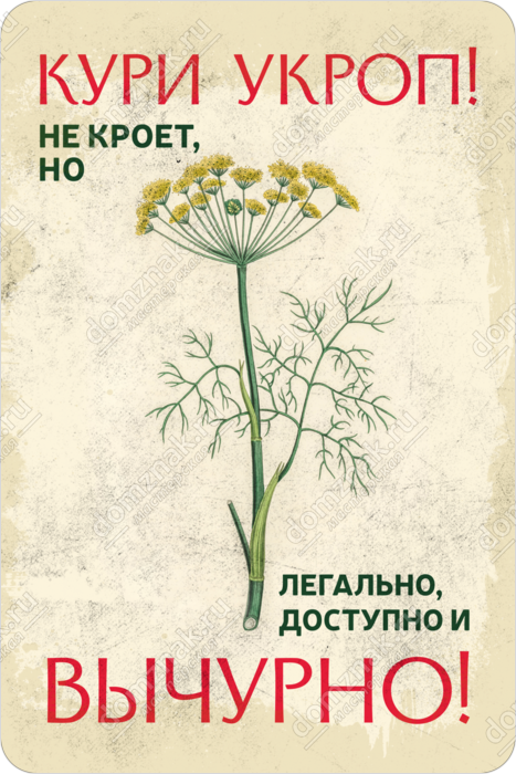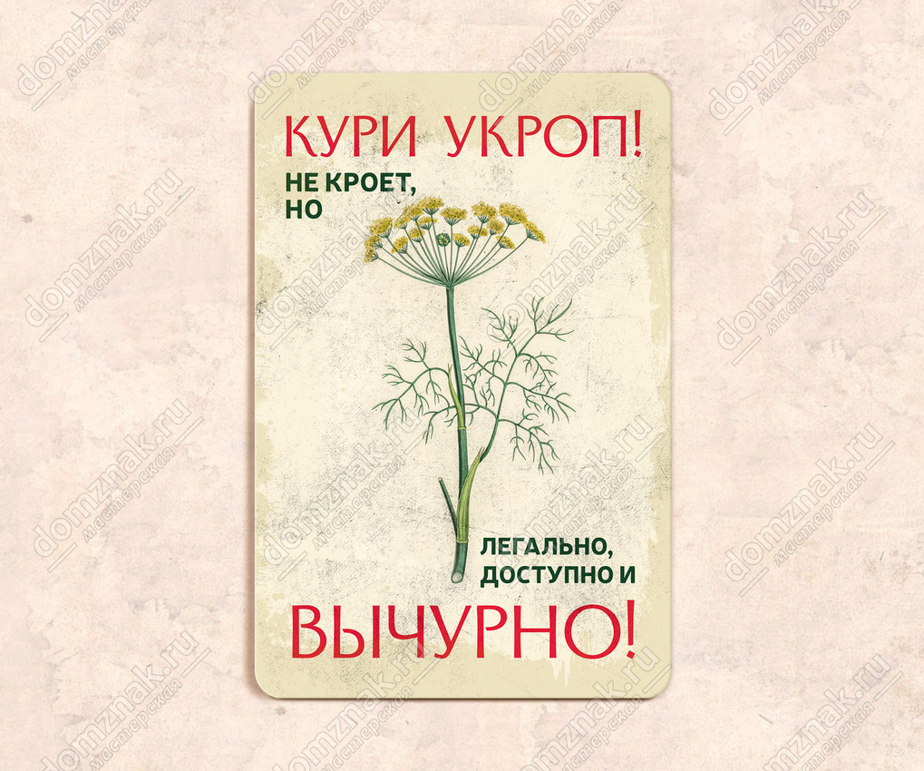 Табличка Кури укроп Не кроет, но легально доступно и вычурно