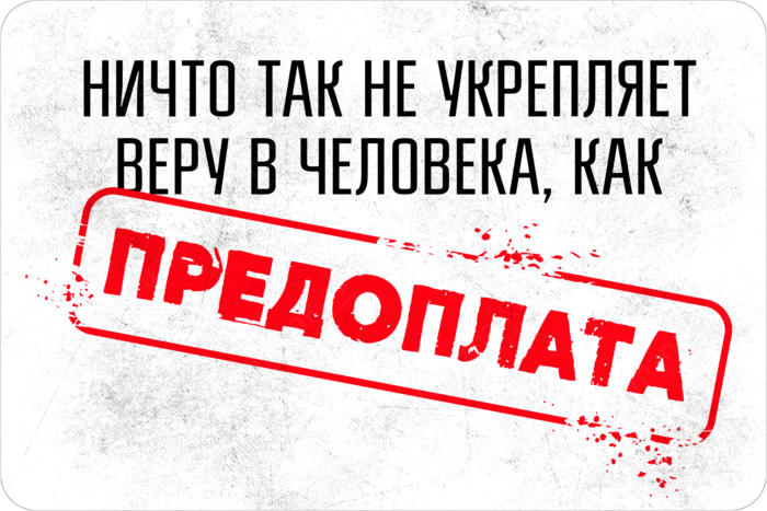 Табличка «Ничто так не укрепляет веру в человека, как предоплата»