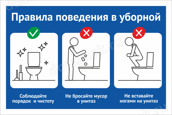 Табличка «Правила поведения в уборной» изготавливается на основе из пластика ПВХ или оцинкованного металла.