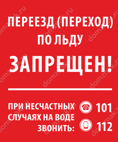 Табличка «Переезд (переход) по льду запрещен!» изготавливается на основе из пластика ПВХ или оцинкованного металла.