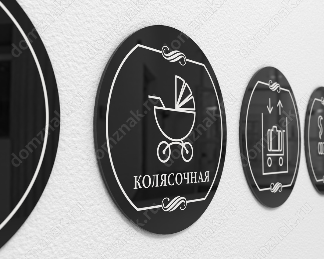 Поднять коляску на верхние этажи – сложная задача, особенно если в доме нет лифта. Если в вашем доме или учреждении есть возможность обустроить колясочную, обозначьте её специальным знаком – молодые мамы будут вам благодарны. Табличка “Колясочная” может быть установлена не только в доме, но и в детской поликлинике или в любом другом учреждении, где часто бывают посетители с детьми и есть возможность выделить место для хранения колясок.