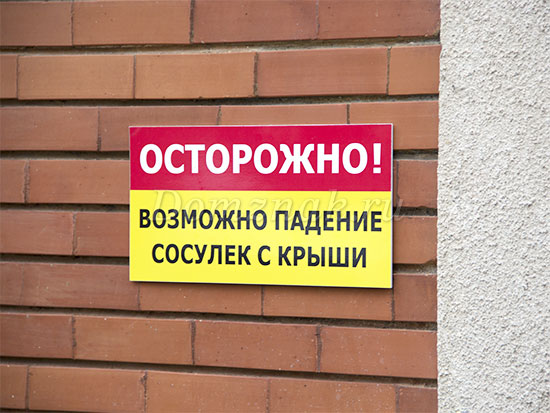 Табличка «Падение сосулек с крыши» изготавливается в нескольких вариантах: