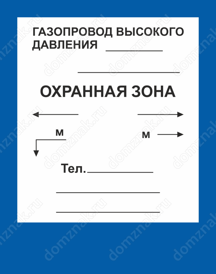 Знак «Газопровод высокого давления. Охранная зона», 56х71 см изготавливается в нескольких вариантах: