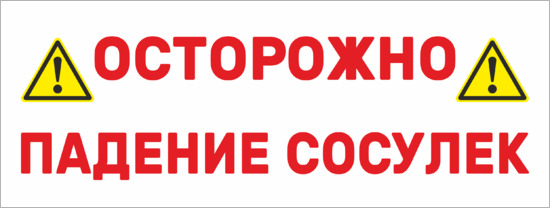 Табличка «Осторожно. Падение сосулек» изготавливается в нескольких вариантах:
