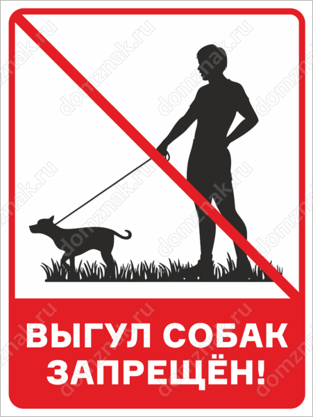 Табличка «Выгул собак запрещён» изготавливается на основе из пластика ПВХ или оцинкованного металла.