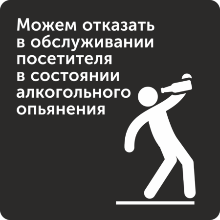 Табличка «Можем отказать в обслуживании посетителя в состоянии алкогольного опьянения»