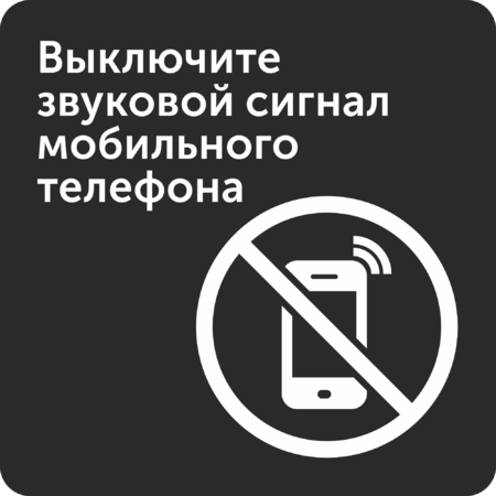 Табличка «Выключите звуковой сигнал мобильного телефона»