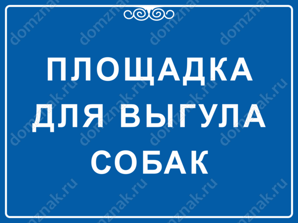 Строгость формы, ясность и лаконичность – эта табличка «Площадка для выгула собак» корректно обозначит территорию двора, предназначенную для прогулки с домашними животными. Благородство синего цвета и яркие белые буквы привлекают внимание, а затейливые и изящные «веточки» в верхней части таблички подчеркнет строгую элегантность дизайнерского решения. Хотите выбрать другой цвет, изменить текст или форму? Звоните – наша компания предложит Вам изготовление и продажу табличек «Площадка для выгула собак» в других вариантах, которые легко и красиво впишутся в архитектуру Вашего двора!