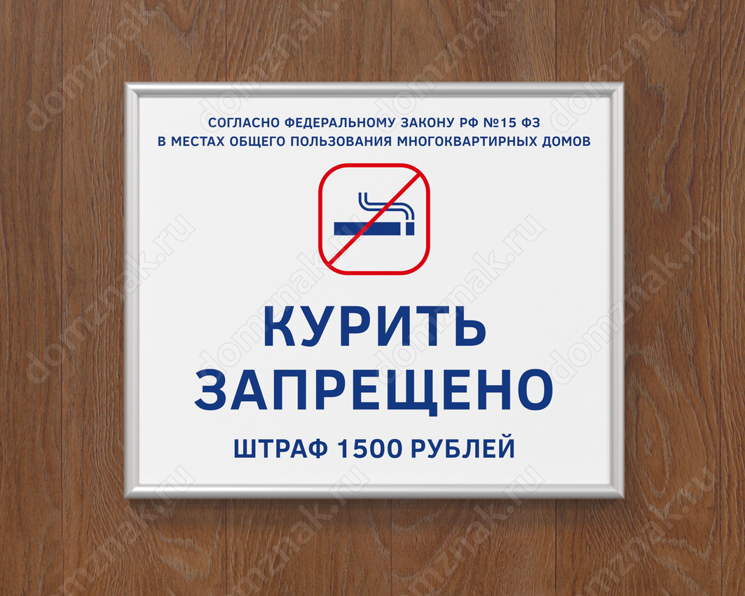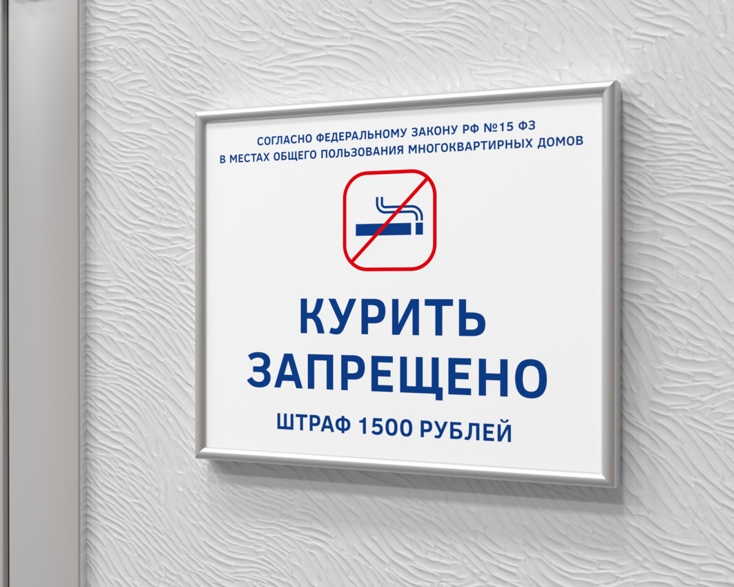 Табличка «Курить запрещено в многоквартирном доме» в рамке