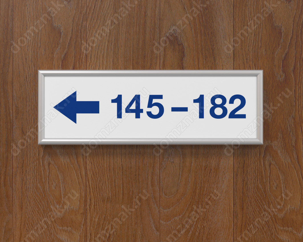 Табличка с нумерацией квартир налево с рамкой из багетного профиля