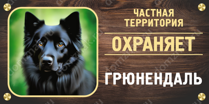 Табличка «Частная территория. Охраняет Грюнендаль» изготавливается на основе из пластика ПВХ или оцинкованного металла.