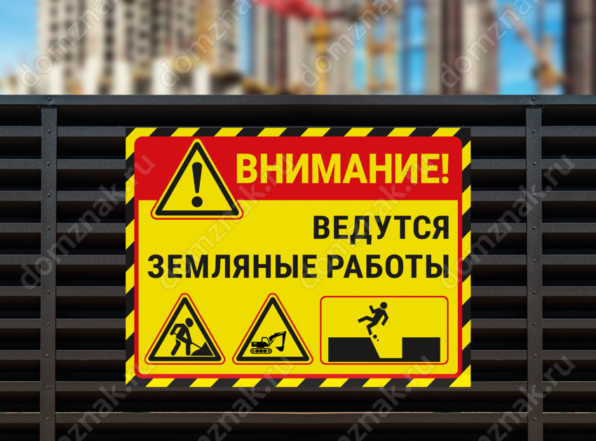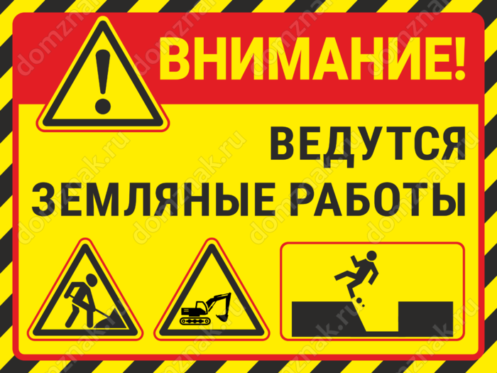 Табличка «Внимание! Ведутся земляные работы» изготавливается на основе из пластика ПВХ или оцинкованного металла.