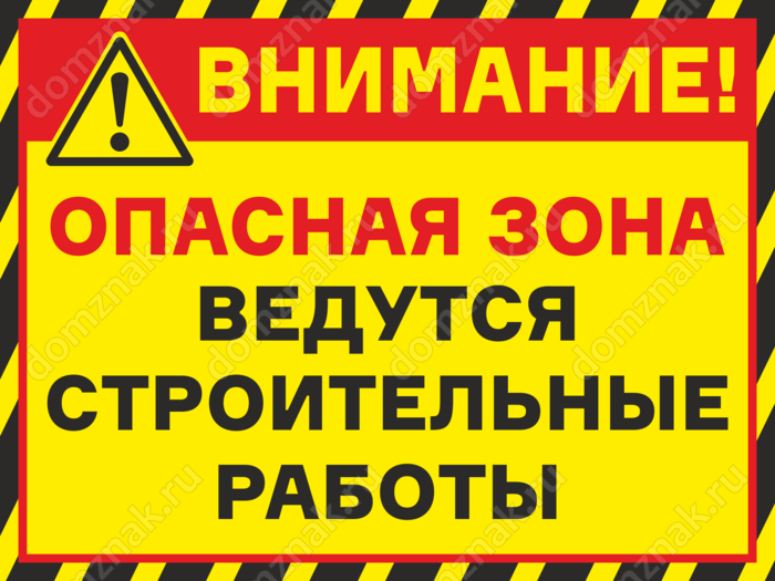 Табличка «Внимание! Опасная зона ведутся строительные работы»