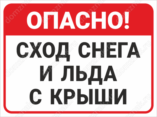 Табличка «Опасно! Сход снега и льда с крыши» изготавливается на основе из пластика ПВХ или оцинкованного металла.