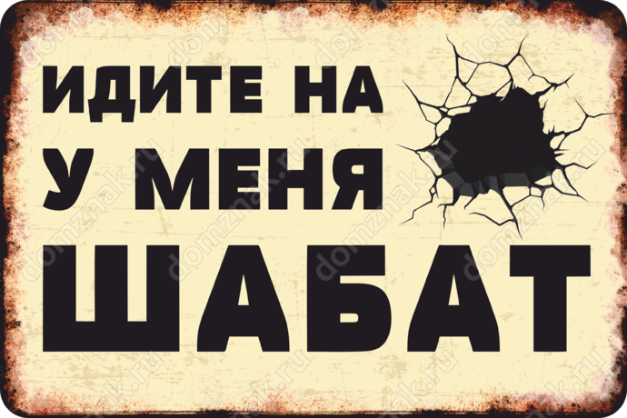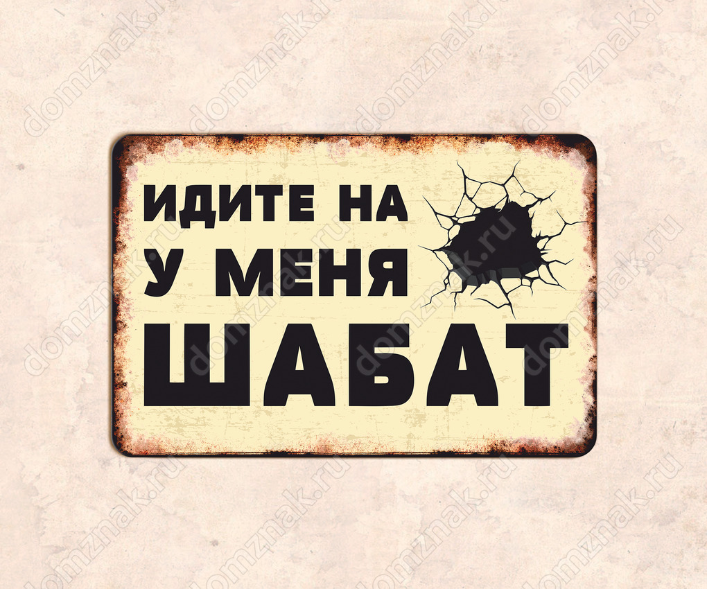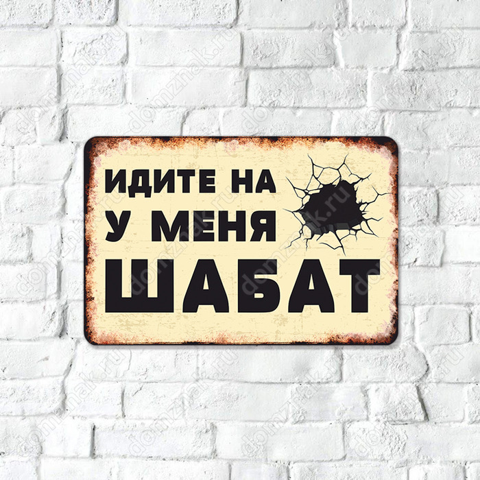 Табличка «Идите на у меня шабат» изготовлена из пластика ПВХ, толщиной 4 мм. Изображение наносится по технологии УФ-печати. Табличка предназначена для использования как в помещении, так и на улице.