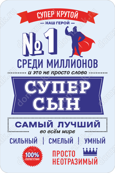 Табличка «Супер сын» изготовлена из пластика ПВХ, толщиной 4 мм. Изображение наносится по технологии УФ-печати. Табличка предназначена для использования как в помещении, так и на улице.