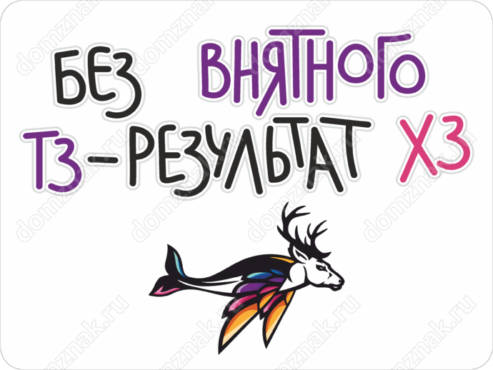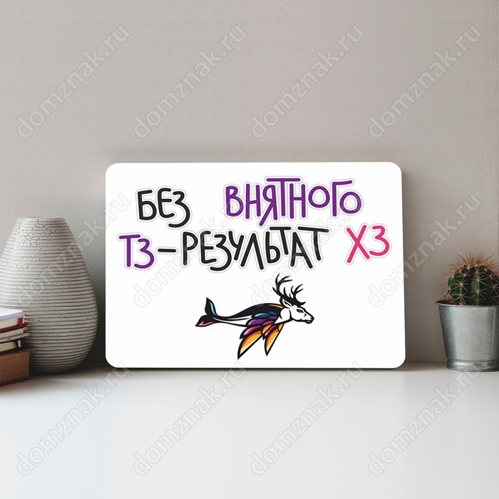 Табличка «Без внятного ТЗ - результат ХЗ» изготовлена из пластика ПВХ, толщиной 4 мм. Изображение наносится по технологии УФ-печати. Табличка предназначена для использования как в помещении, так и на улице.