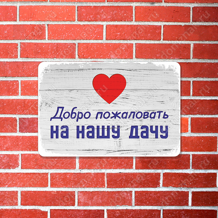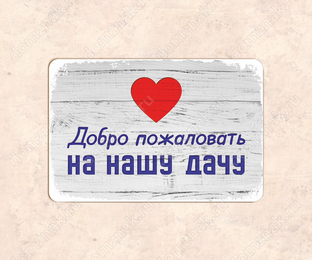 Табличка «Добро пожаловать на нашу дачу» изготовлена из пластика ПВХ, толщиной 4 мм. Изображение наносится по технологии УФ-печати. Табличка предназначена для использования как в помещении, так и на улице.