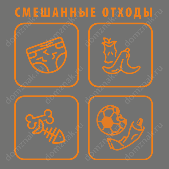 Табличка «Смешанные отходы» изготавливается на основе из пластика ПВХ или оцинкованного металла.