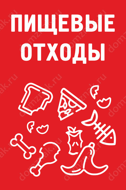 Табличка «Пищевые отходы» изготавливается на основе из пластика ПВХ или оцинкованного металла.