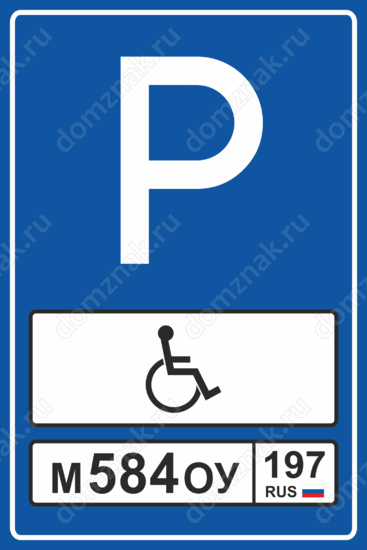 Знак «Парковка для инвалидов» с номером авто