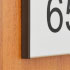 Табличка на дверь с номером помещения изготавливается из алюминиевого профиля Cosigns бельгийского производства. Металлическая основа, торцы таблички закрыты черными пластиковыми вставками. По желанию клиента можно использовать основу цвета холодного алюминия или теплого матового золота.