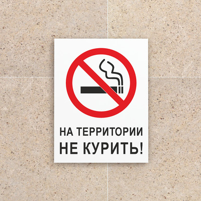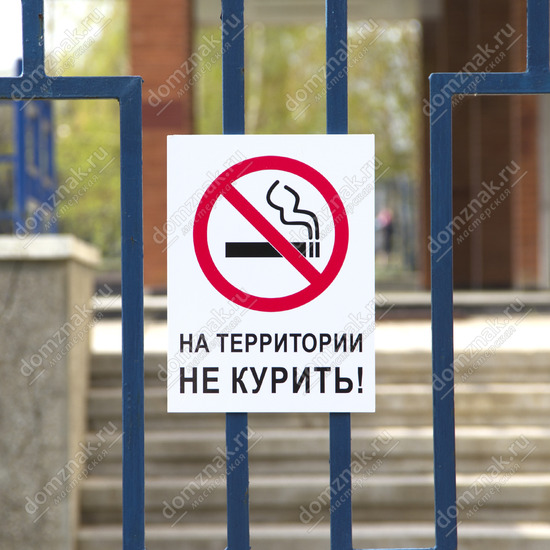 Табличка «На территории не курить» изготавливается на основе из пластика ПВХ или оцинкованного металла.