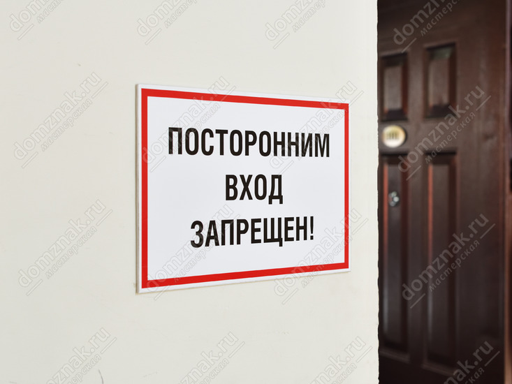 Классический вариант предупреждения посторонних о том, что вход запрещён, и дальше на территории находиться нельзя. Вы можете купить у нас качественную информационную табличку «Посторонним вход запрещен» с красной окантовкой для информирования людей и снижения случаев прохода без разрешения.